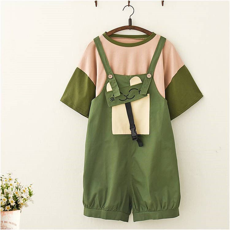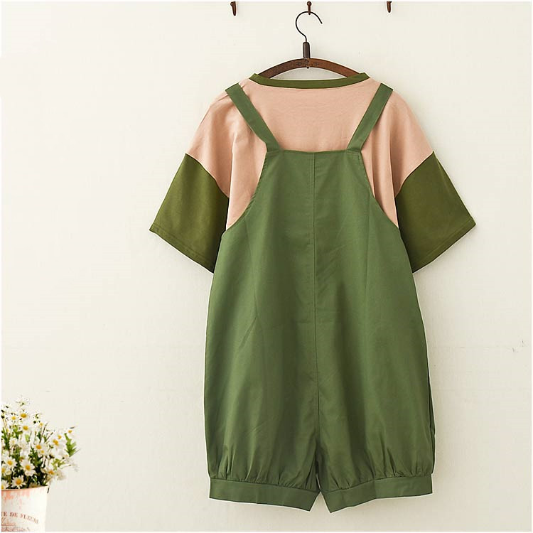 Color Classification: Khaki Short Sleeve, Army Green Overalls, Short Sleeve + Overalls 2 Piece Set