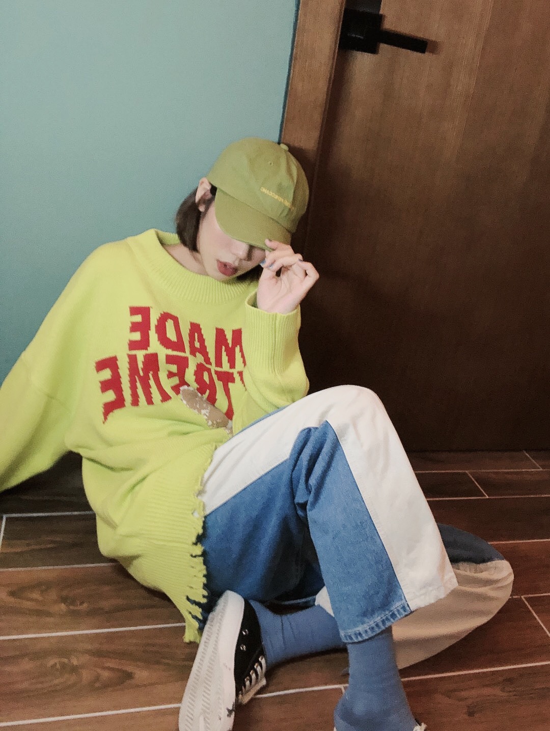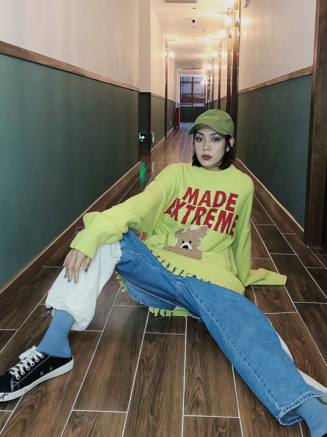 Lazy letter letter bear print loose sweater