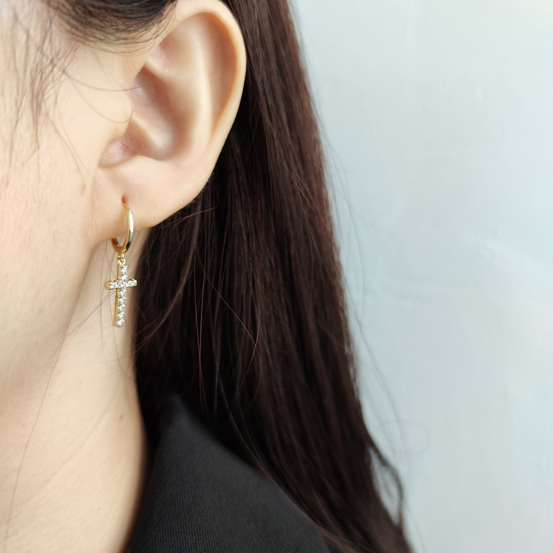 Material: silverStyle: female styleShape: crossTreatment process: insert diamondPrecious metal quality :2Color: white gold, goldPurity: 925 silver