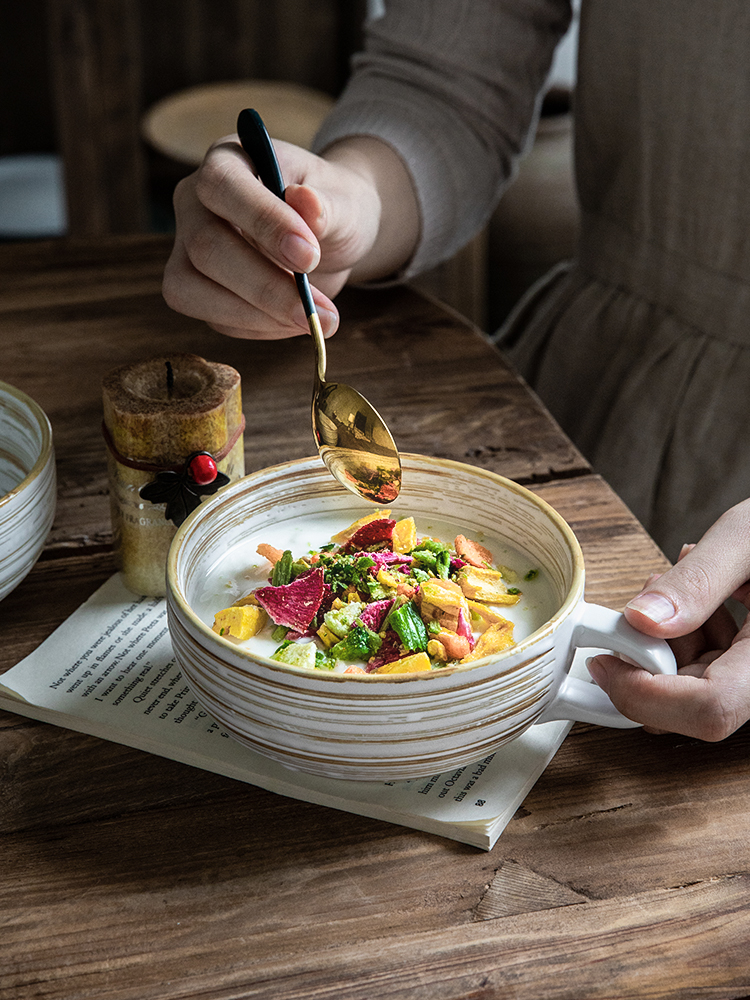 Product information:Material: CeramicCapacity: 410mLStyle: AmericanColor classification: Old time - round breakfast cup, old time - round breakfast cup + dark greenPacking list:Bowl*1 or bowl+spoon*1
