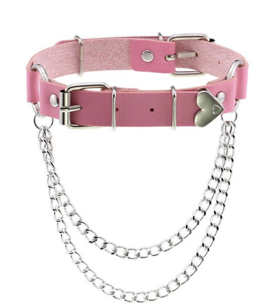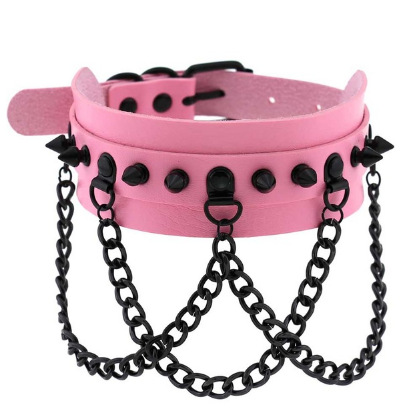 Women's Leather Necklace Rivet Buckle Buckle Chain Charm Neckband Gothic Girl Necklace