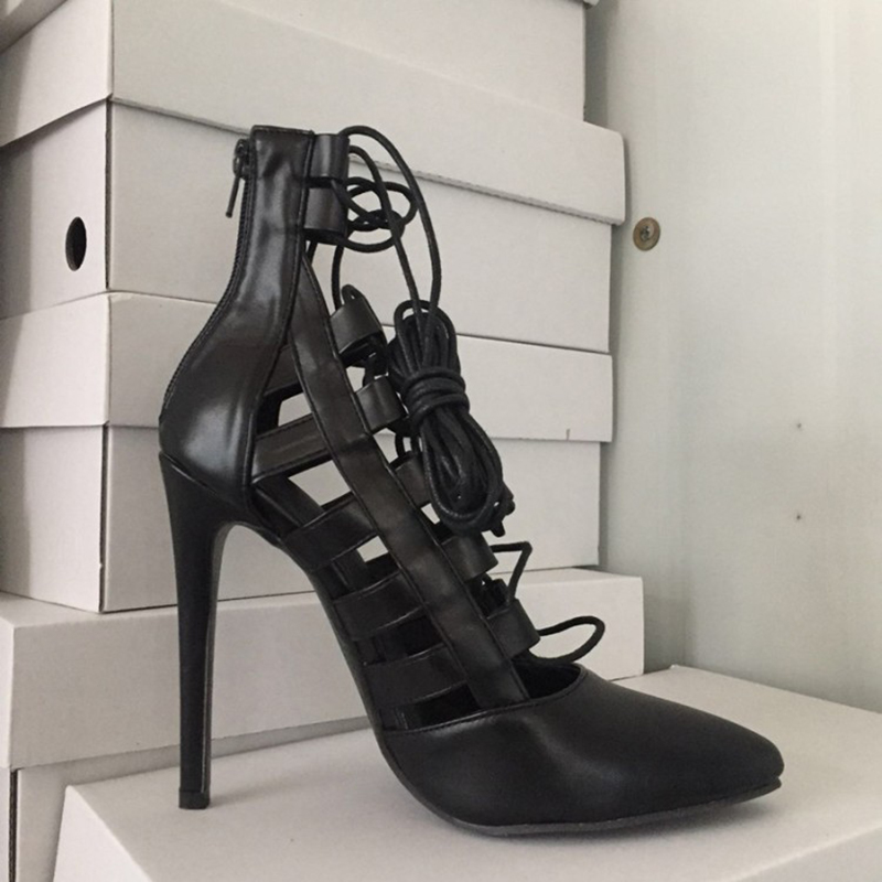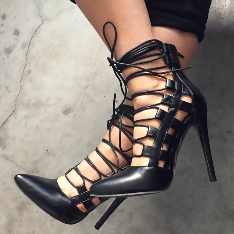Pointed-toe high heel lace-up Roman shoes