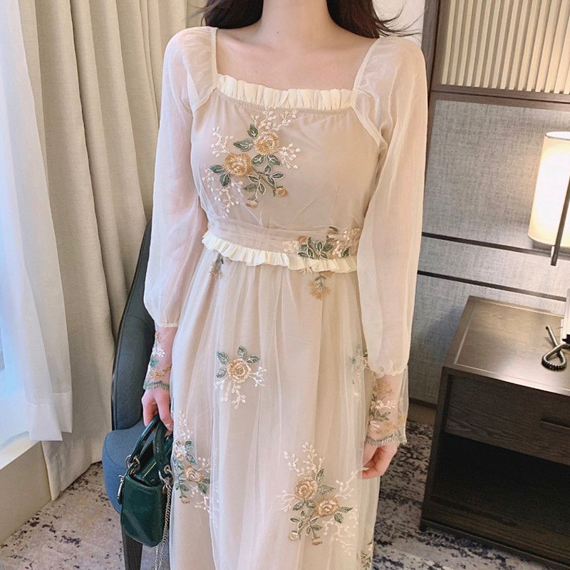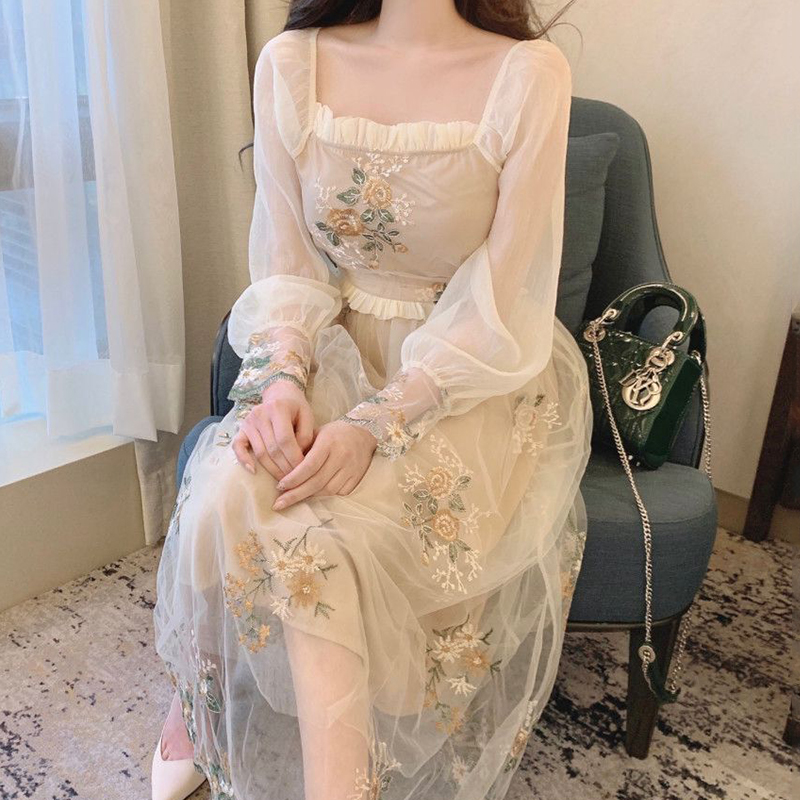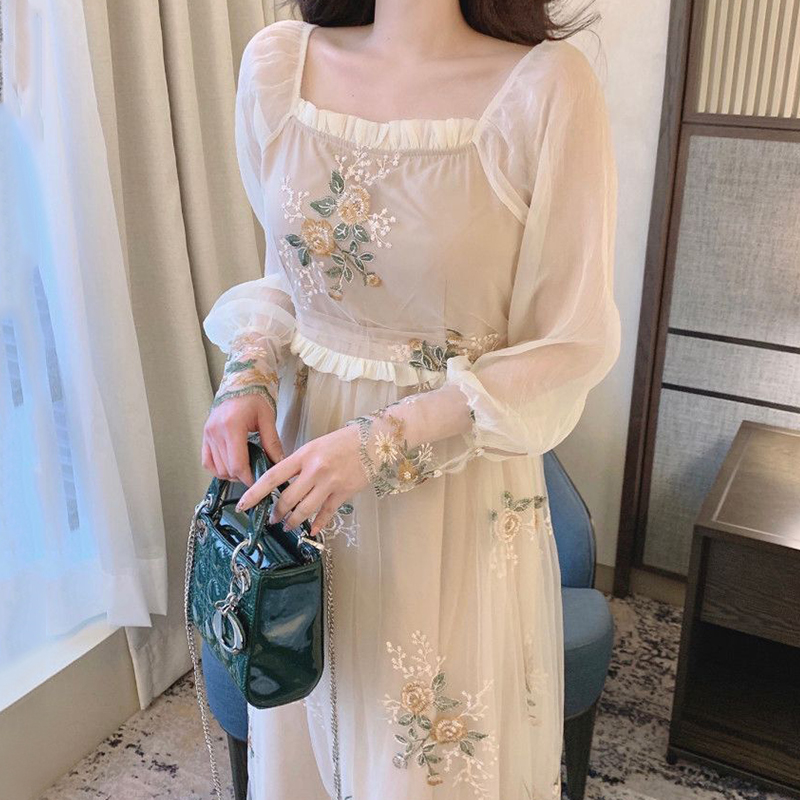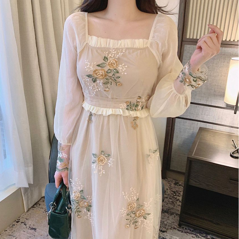 Size: S M LPattern: ColorStyle: CommuterCommuter: KoreanCollar type: square collarColor classification: beigeSleeve type: conventional
