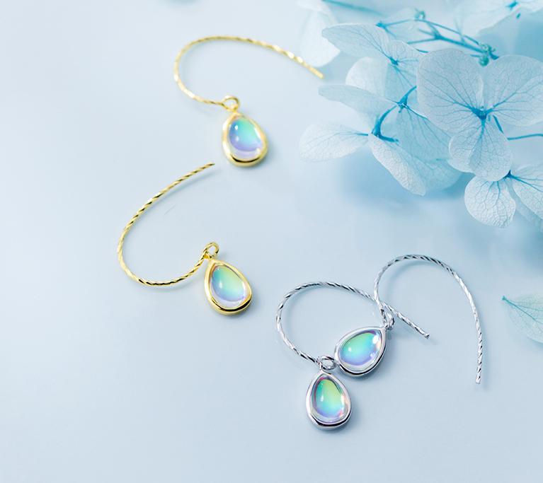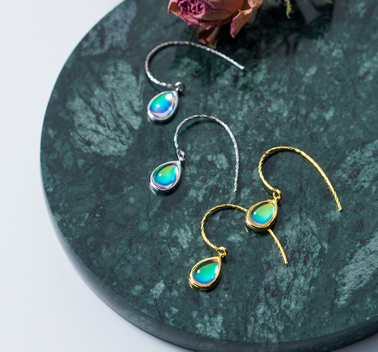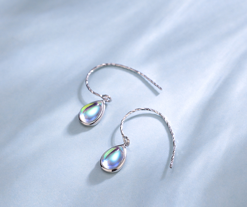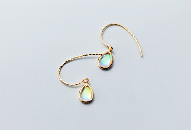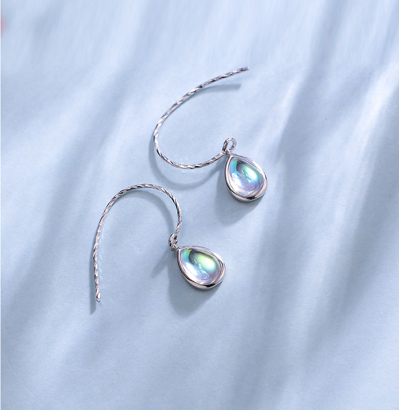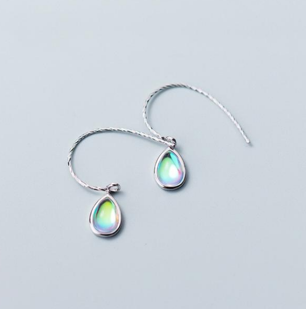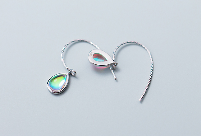 Sterling silver drop-shaped glass gradient earrings female basic ins net red earrings Korean earrings