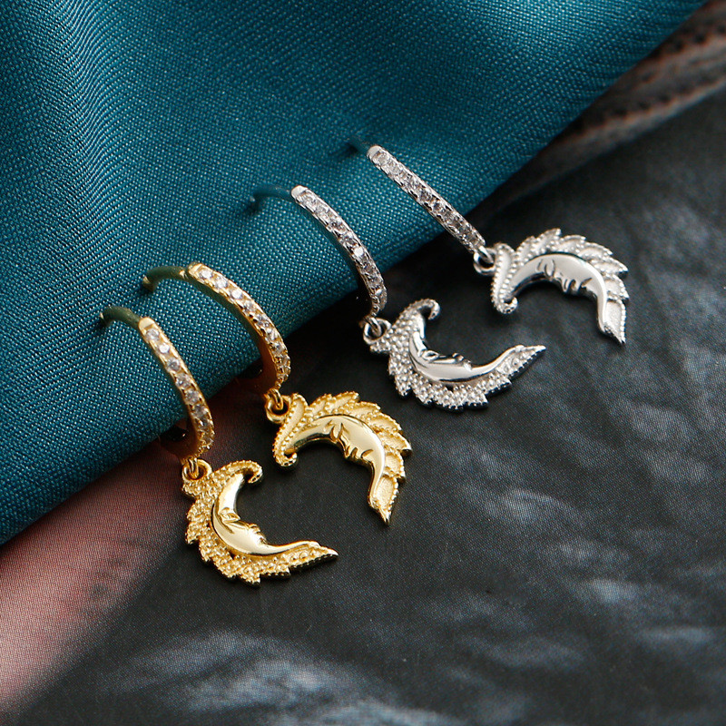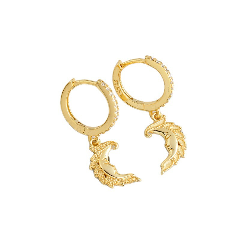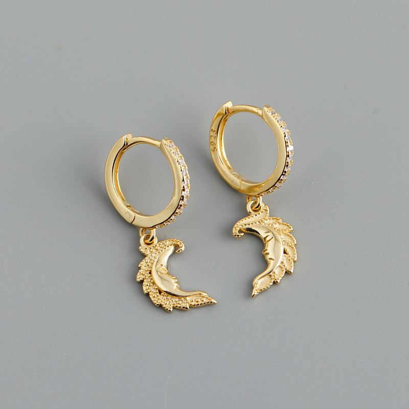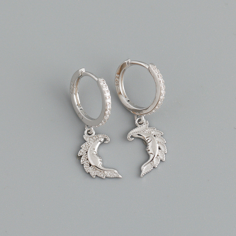 European And American Light Luxury Fashion Personality Moon Face s925 Sterling Silver Earrings