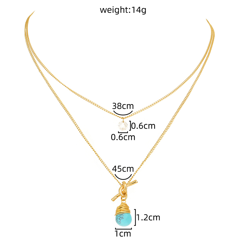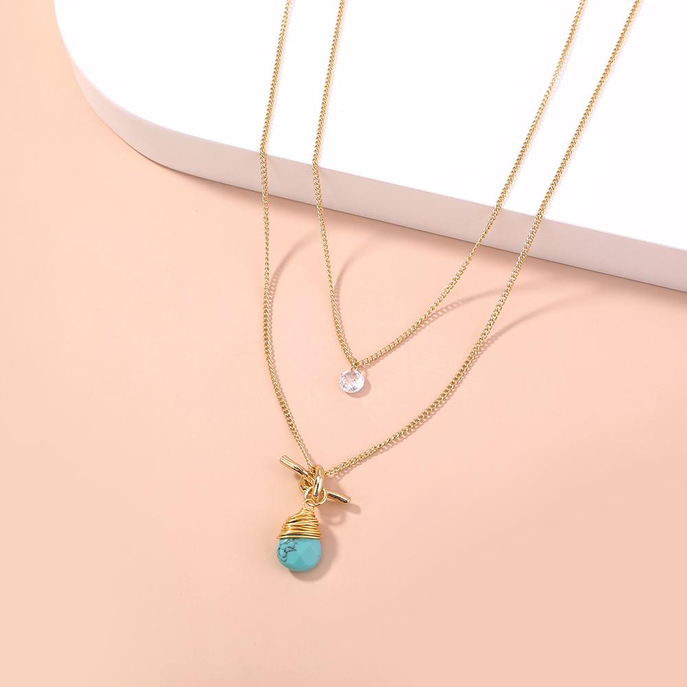 European and American foreign trade new product hot-selling jewelry, metal knotted hand-wound turquoise water droplet simple multi-layer necklace