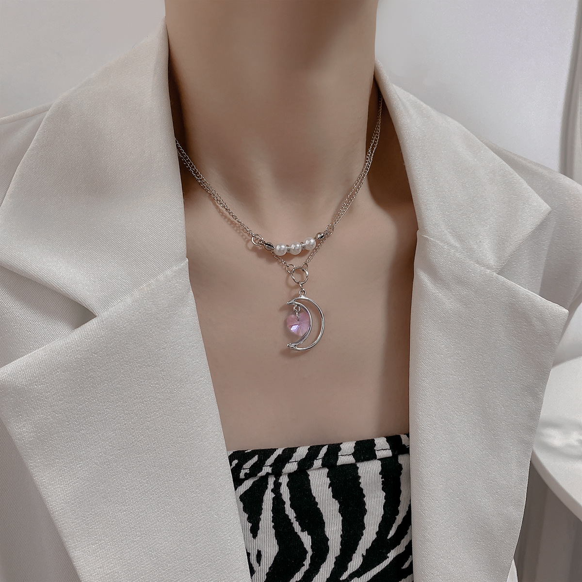 Product information:Material: AlloyTreatment process: electroplatingType: NecklaceStyle: Women'sShape: starColor: Crescent Pearl NecklacePacking list:Alloy clavicle chain X1