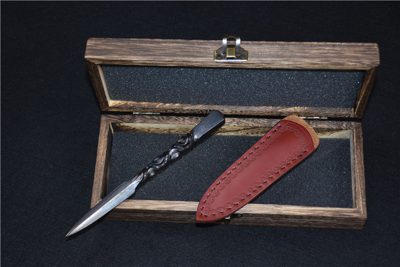 Full length: 173mmBlade length: 67mmBlade width: 14mmMaterial: One-piece patterned steelPacking: leather case, high-grade wooden box, knife