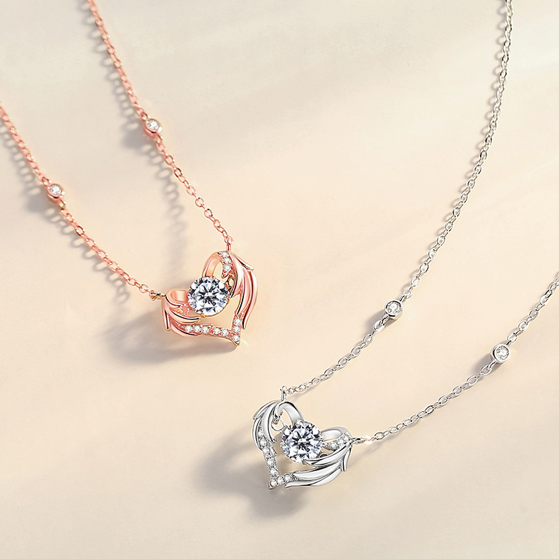 Color: Guardian wing necklace white gold color, Guardian wing necklace rose gold
