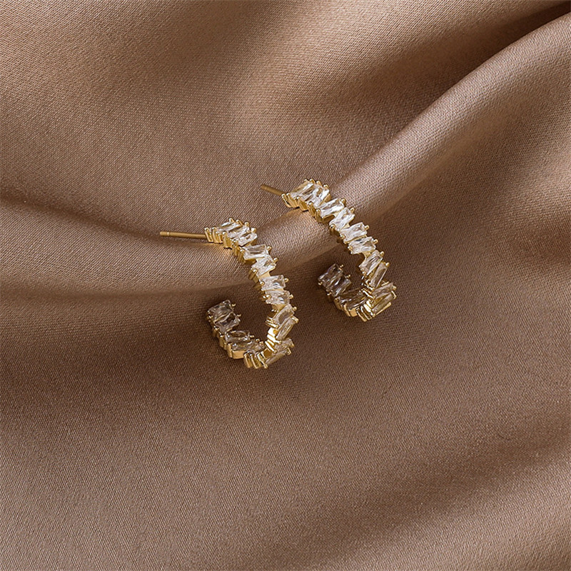 Style: Korean style/Korean styleMaterial: copperType: earringsStyle: women'sModeling: geometricMosaic material: gold-plated inlaid artificial gems/semi-precious stones