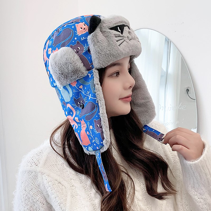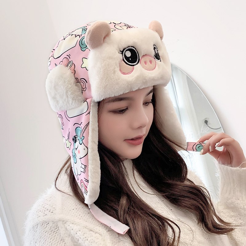 Cute parent-child hat female autumn and winter Korean children's Lei Feng hat winter earmuffs warm riding plus velvet thickening