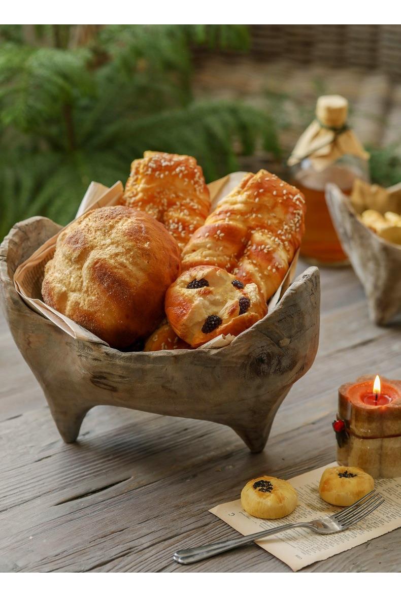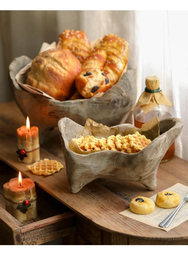 Wooden Ingot-shaped Fruit Tray With Feet Irregular Bread Plate Solid Wood Basin