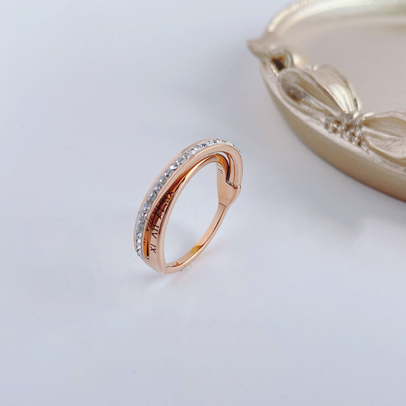 Color: white diamond Roman rose gold ring, white diamond Roman gold ring