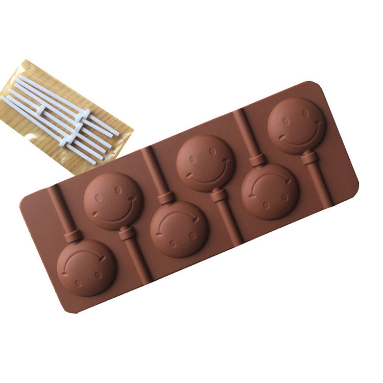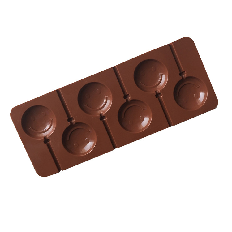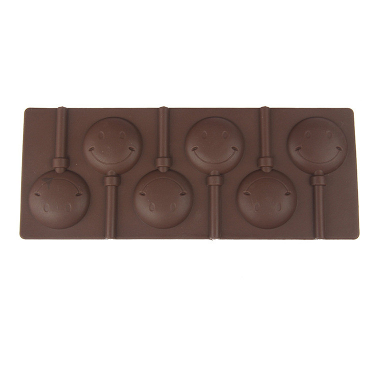 Name: Silicone Lollipop MoldShape: 6 even smiling facesSize: 23.5*9.3cmMaterial: SiliconeColor: brownPurpose: making lollipops