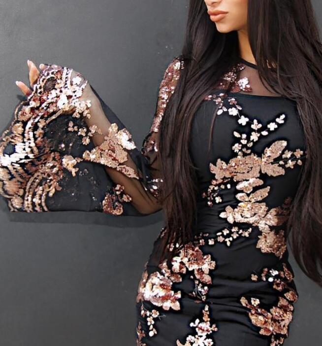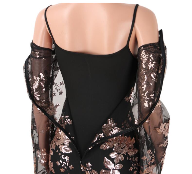 Sexy perspective beads, horn sleeves lined with two pieces of dress.