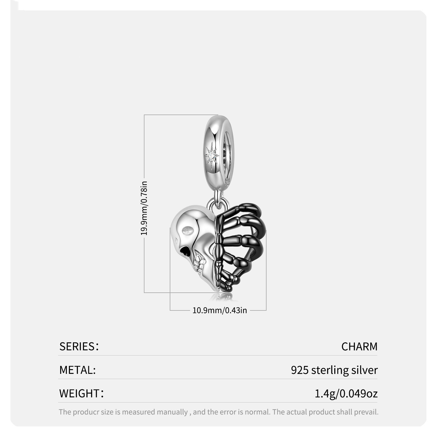 Specification:Type: PendantMaterial: SilverStyle: Original designSeries: Skull seriesImage: Skull heart skeletonPurity: 925 silverPacking list: