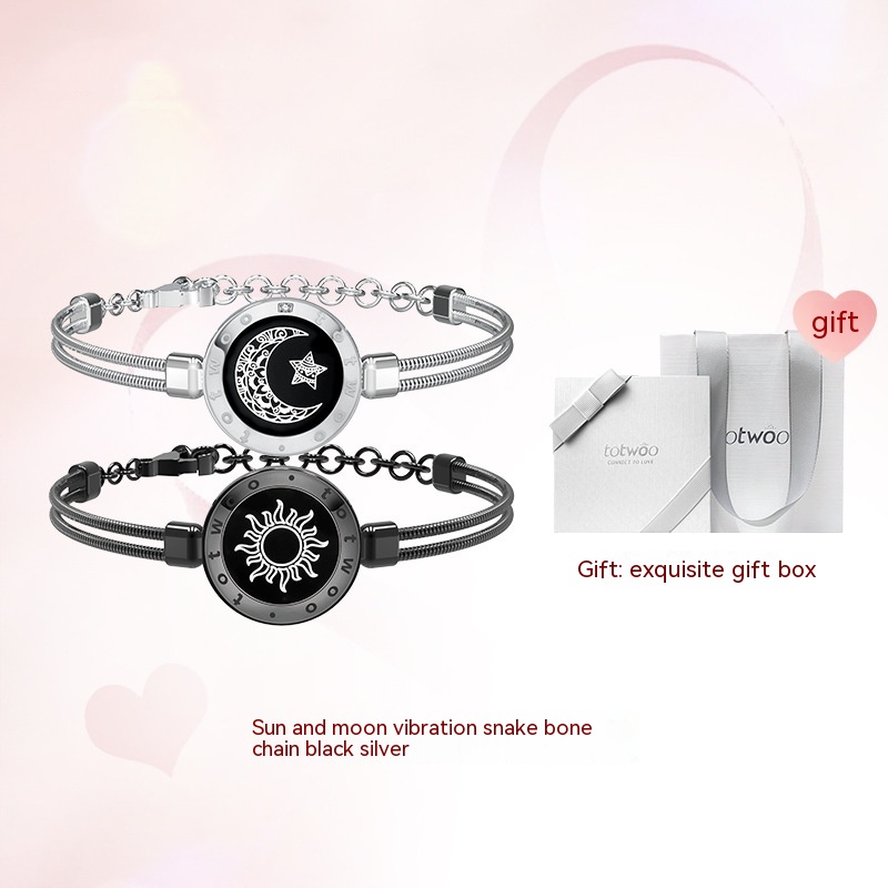 Color: [rechargeable flash vibration pair] Sun and Moon Lovers leather rope snake bone chain get exquisite gift box gift bag, [rechargeable flash vibration pair] Sun and Moon couple snake bone chain Black Gold get exquisite gift box gift bag, [Rechargeable flash vibration pair] Sun and Moon couple snake bone chain black and silver models send exquisite gift box gift bag, [rechargeable lightning shock pairs] Sun and Moon couple woven leather string leather rope leather rope silver model send exquisite gift box gift bag, [Rechargeable flash pair] Sun and Moon couple woven leather string leather rope leather rope silver style with exquisite gift box gift bag