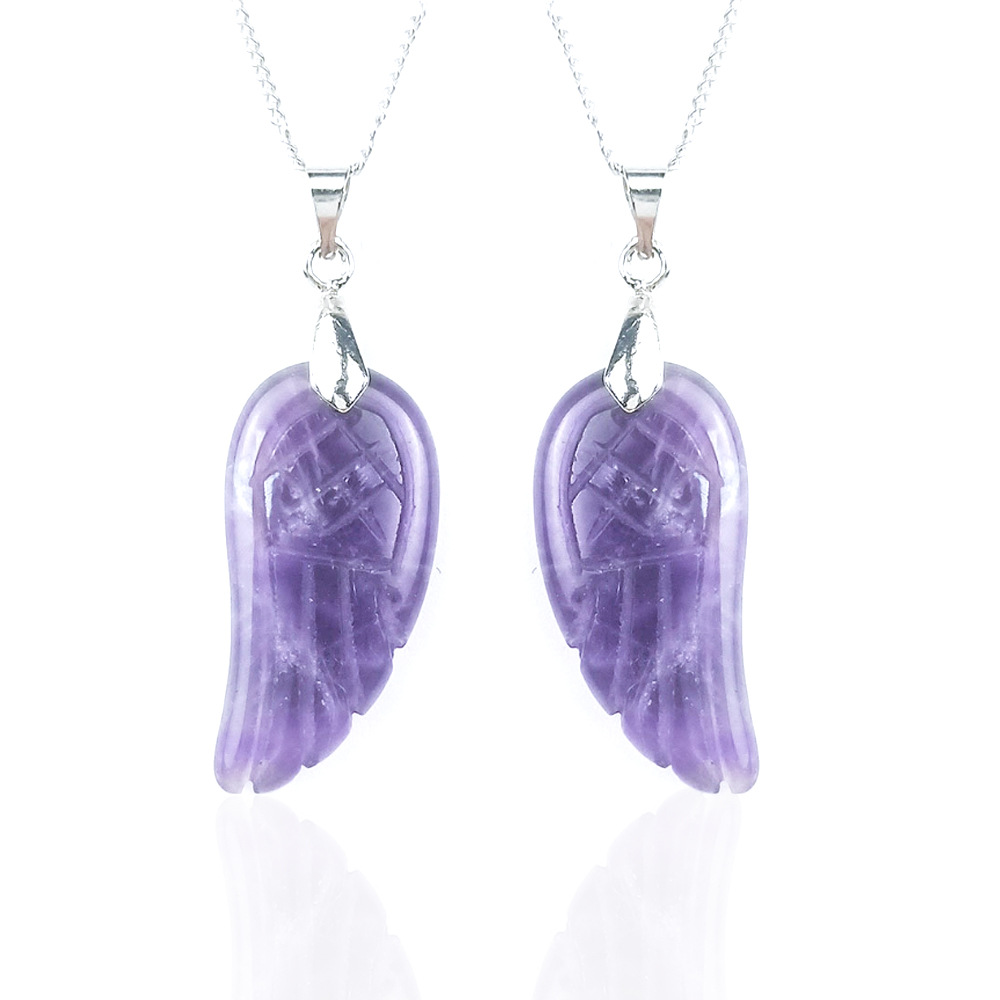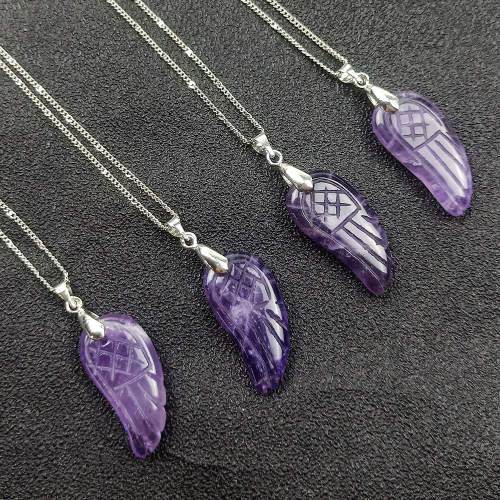 Natural Amethyst Necklace Carved Angel Wing Pendant