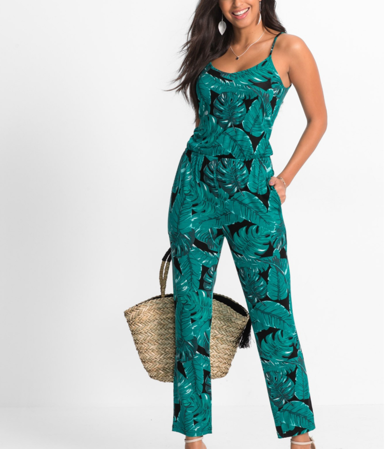 European and American women's explosions sling V-neck print one-piece trousers bottoming beach casual one-piece trousers