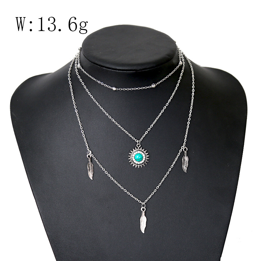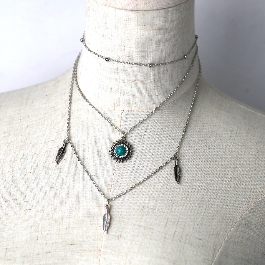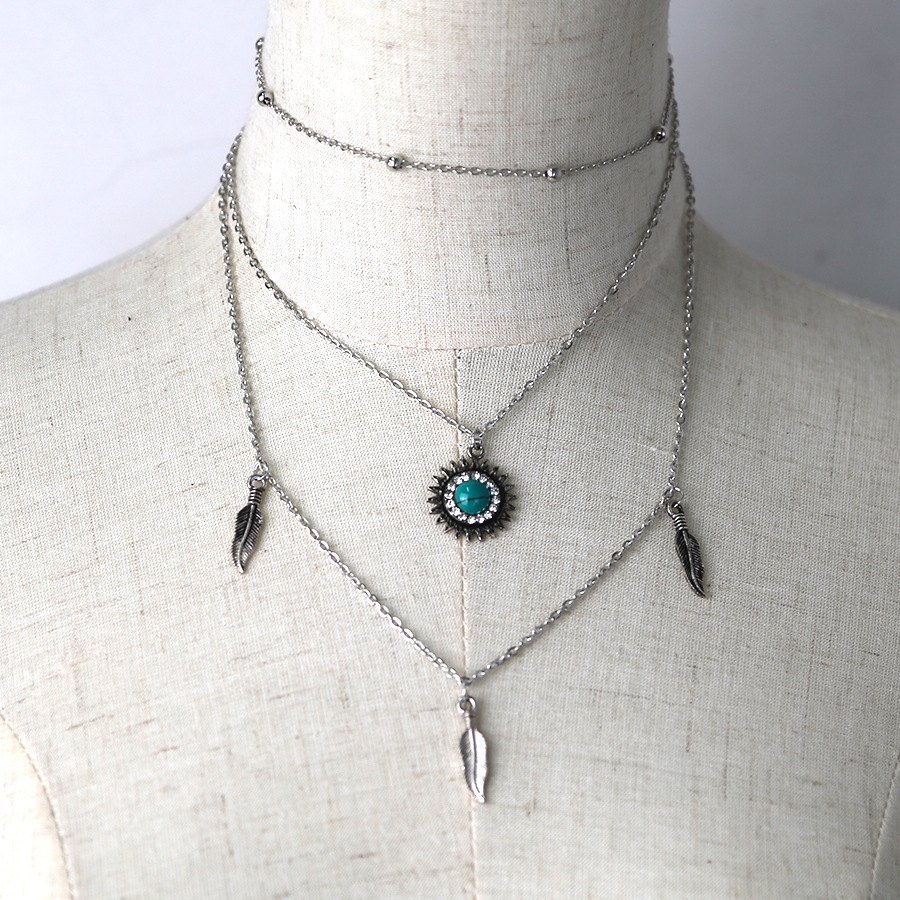 Multi layer necklace with metal feathers