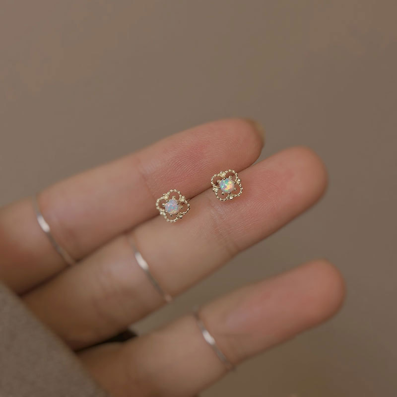 Specifications:Product name: Hollow lace studMaterial: S925 sterling silverProduct color: White gold yellow goldProduct maintenance: Wipe silver cloth to keep dry and sealedProduct size: 0.6*0.6 [unit: Cm]Packing list: