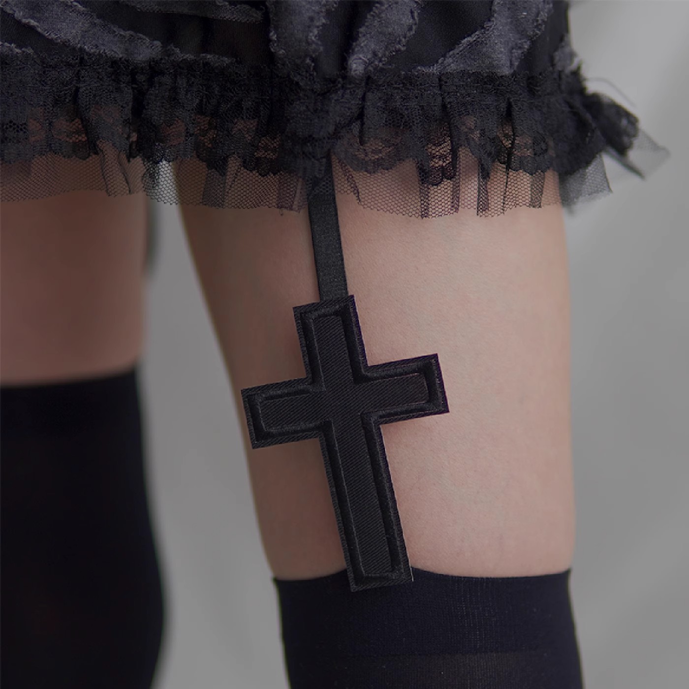 Product information:Pattern: solid color Thickness: thin Fabric name: Nylon Color: Cross Black, cross White, metal cross Black, metal cross White Size: free size Style: Sexy