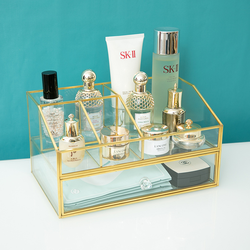 Product information:Color: A12 small size 19*11.6*12CM,A12 large 24*13.8*12.5cm,A12 large 28*17 * 15CM Scope of Application: Cosmetics Function: Organization Material: Glass Style: modern simplicity Capacity: 1L