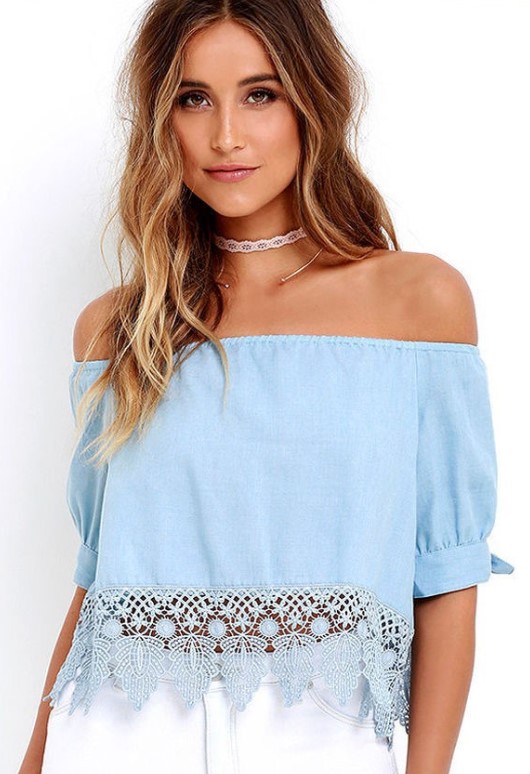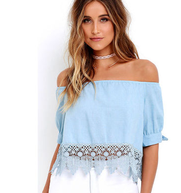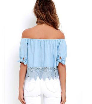 Europe and the United States burst short-sleeved shirt loose hem lace