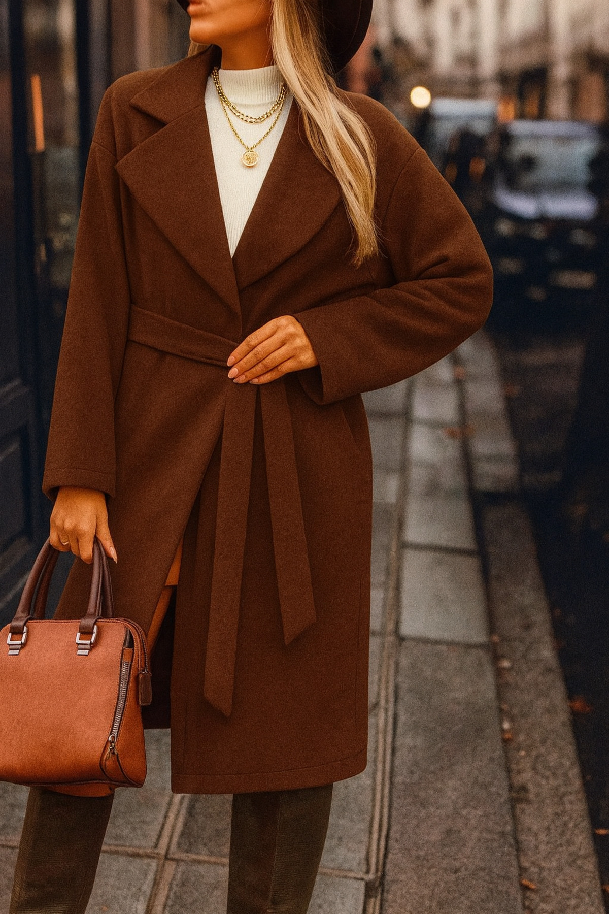 Waist belt makes the coat show the body lines more elegantly.It creates a feminine silhouette by emphasizing the waist, especially when wearing thick sweaters.Women's coat with tie belt at the waistmodels provide a stylish balance for both slim and plump body types.The belt detail ensures that the coat is not just an outerwear item, but also a fashion statement.