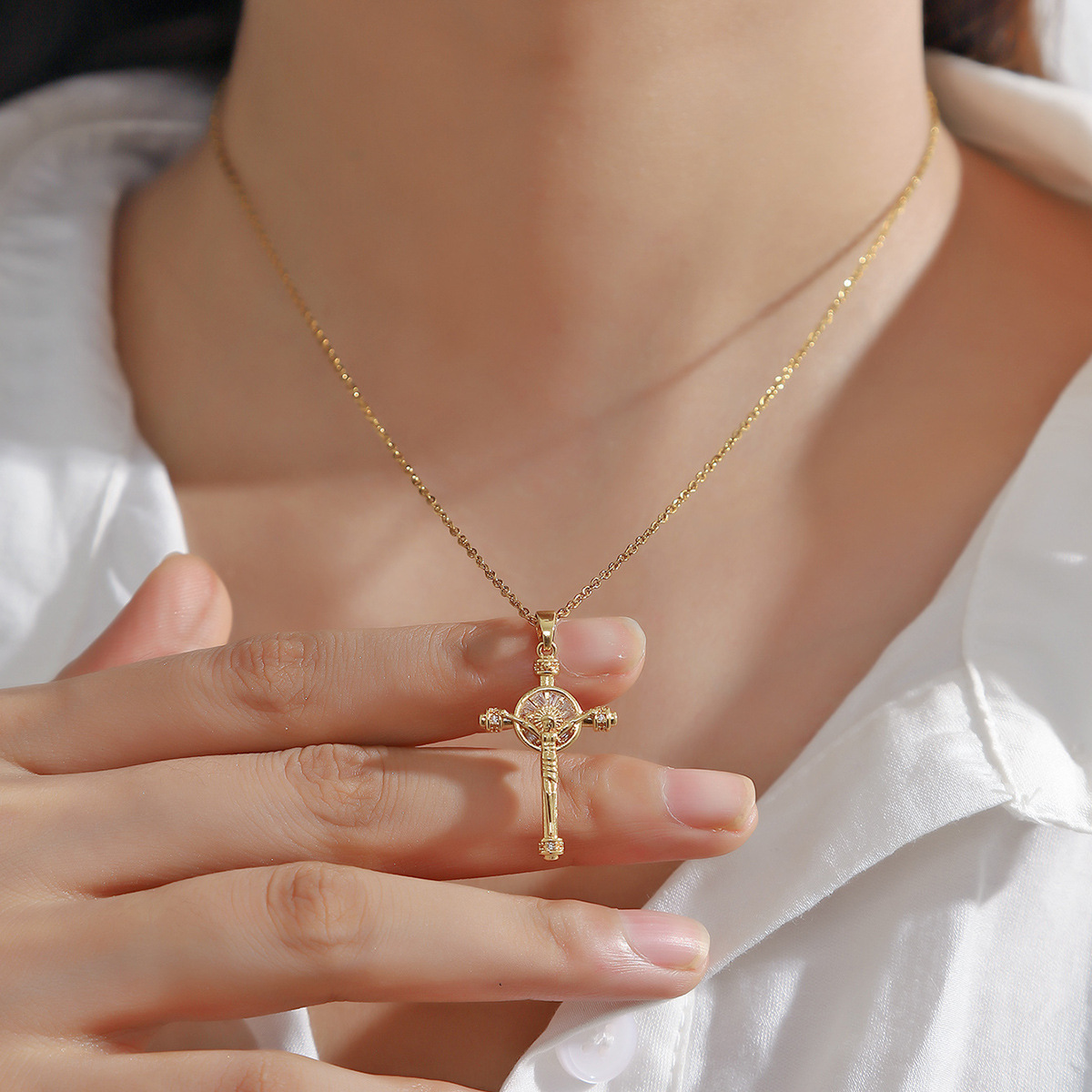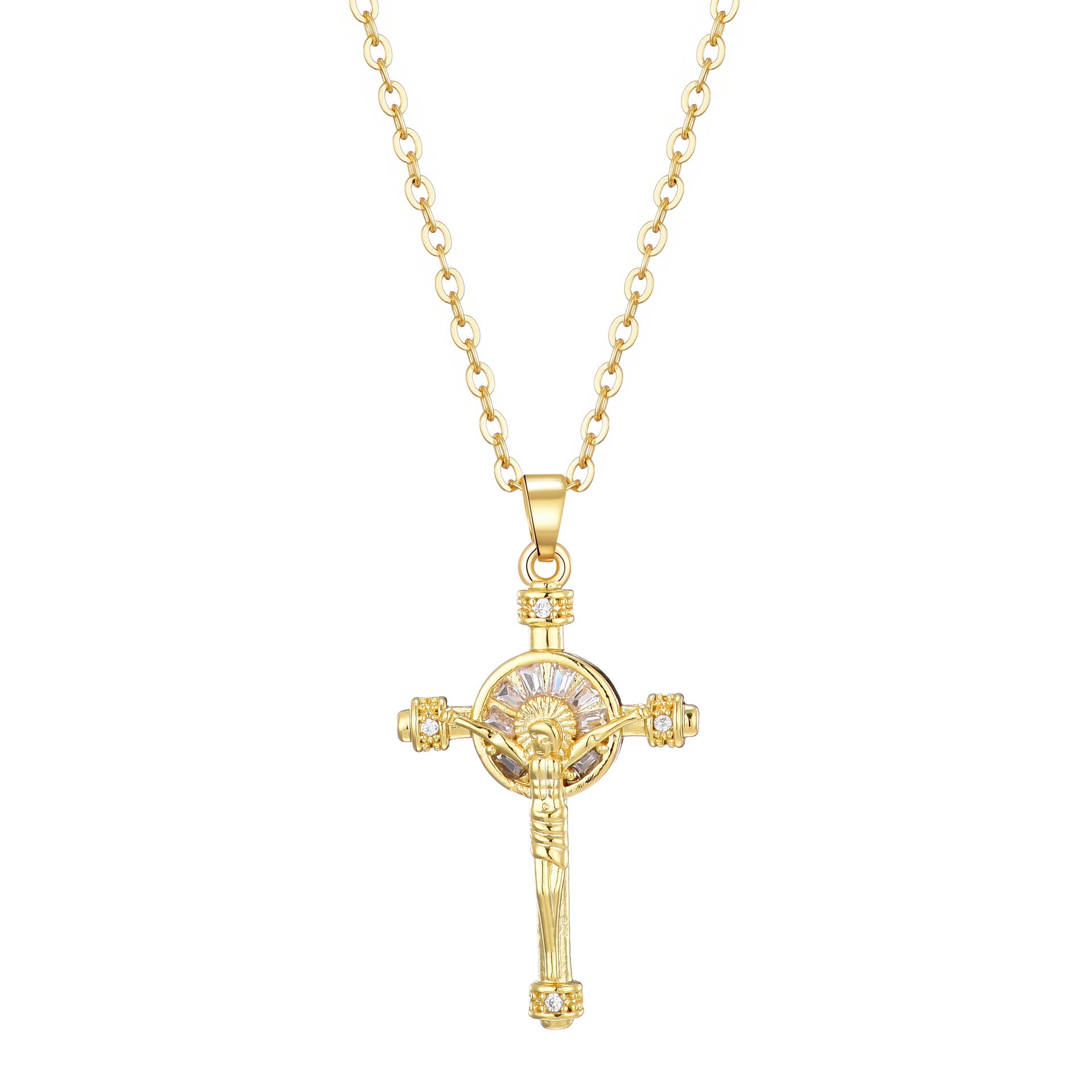 Product information:Treatment Process: Electroplating Color: Gold Applicable people: Unisex Pendant material: zircon Chain style: O-ring chain Material: CopperPopular elements: Cross Style: unisex style