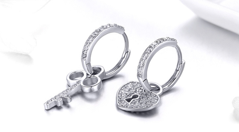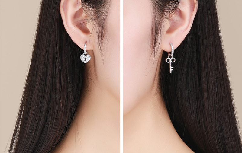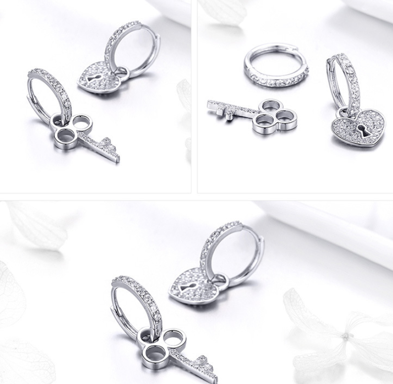Earrings female European and American love lock 925 sterling silver romantic platinum-plated asymmetric allergy temperament earrings SCE577
