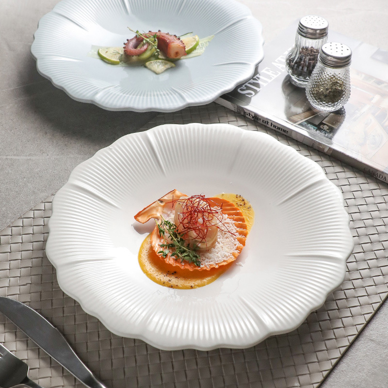 Color: 10-inch wave stripes shallow plate bright white, 10-inch wave stripes shallow plate gray blue