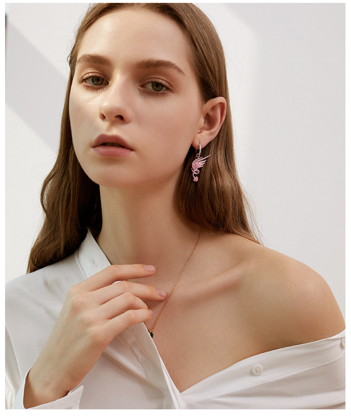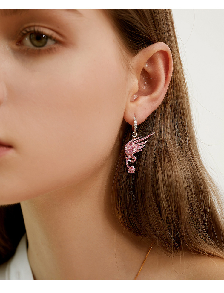 S925 Sterling Silver Micro Inlaid Diamond Angel Wing Earrings