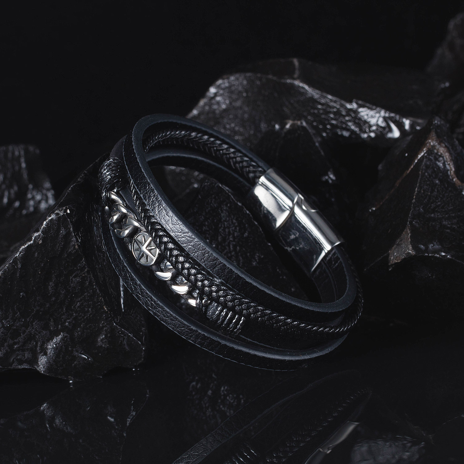 Material: leatherType: bracelets, braceletsStyle: men'sModeling: geometricMosaic material: not inlaidColor: 1455-leather braceletPopular elements: retro