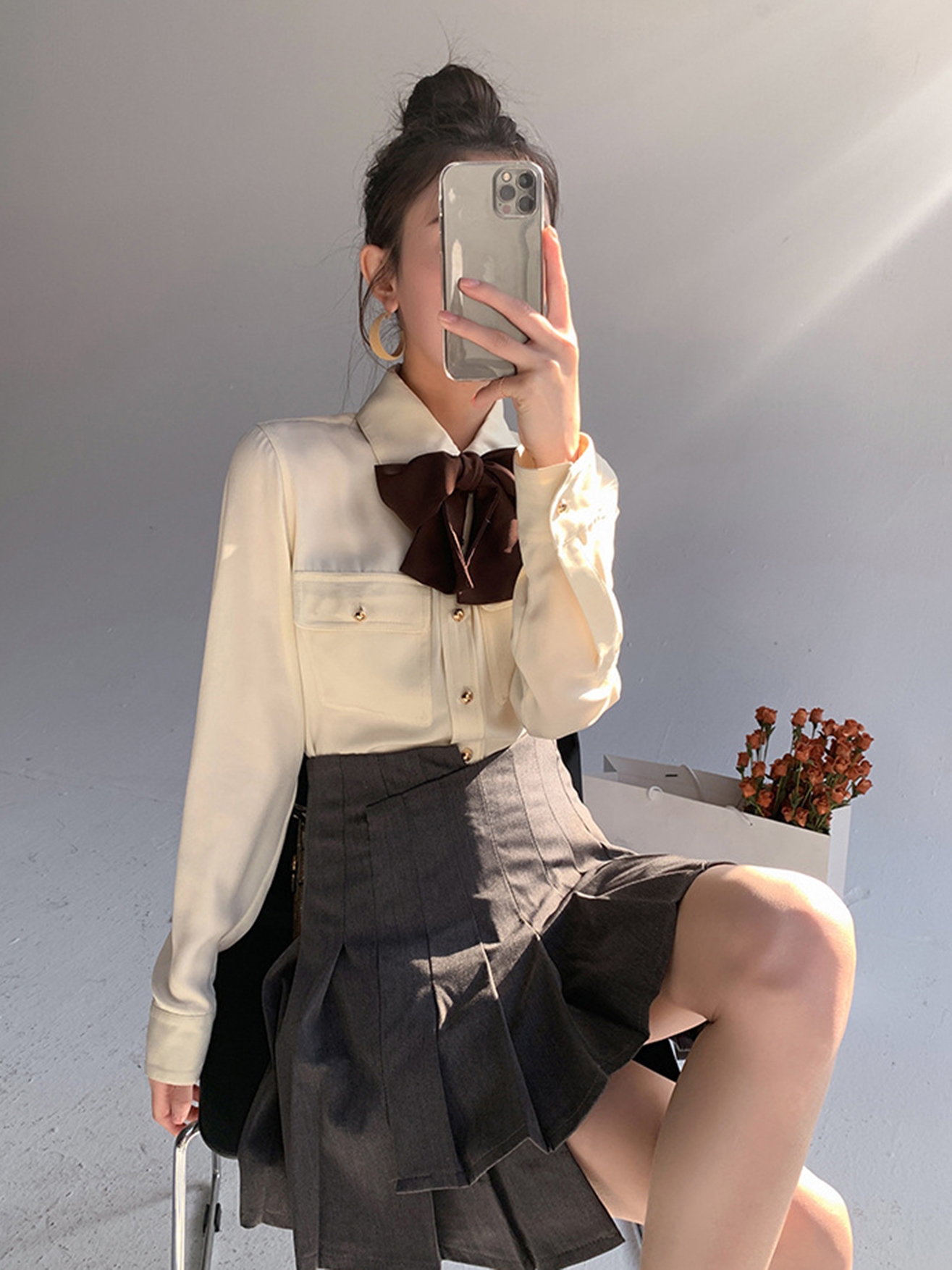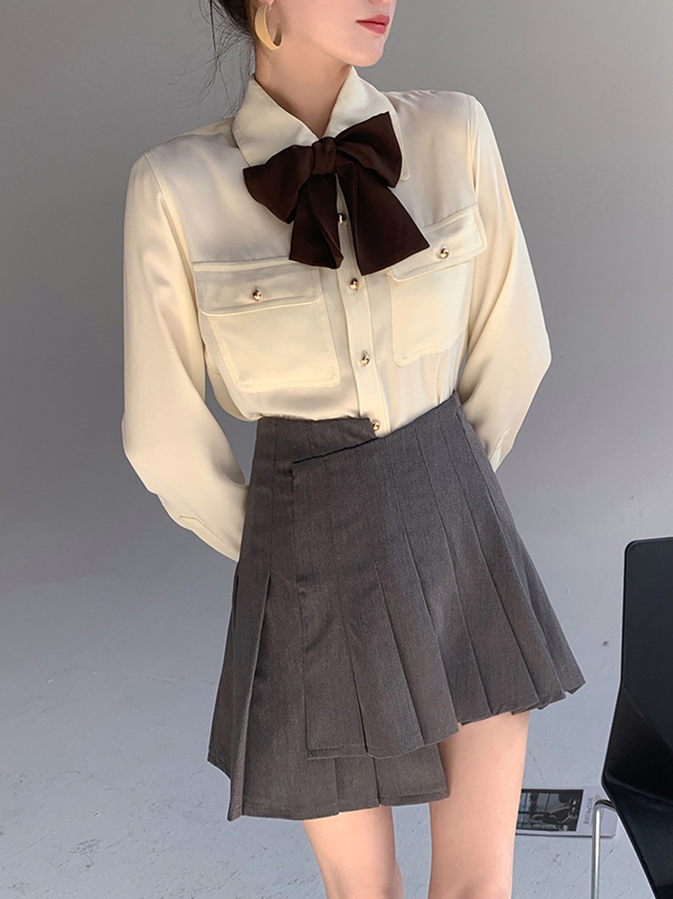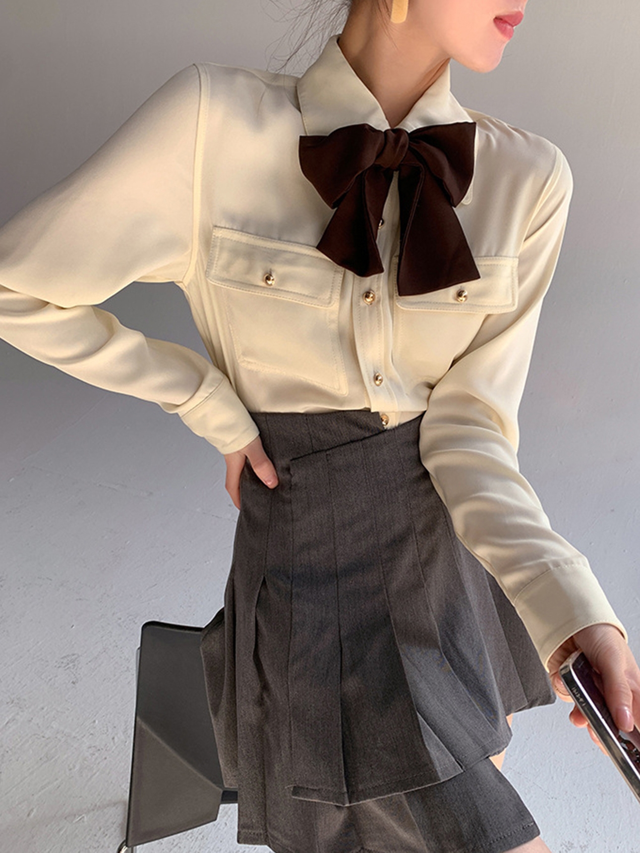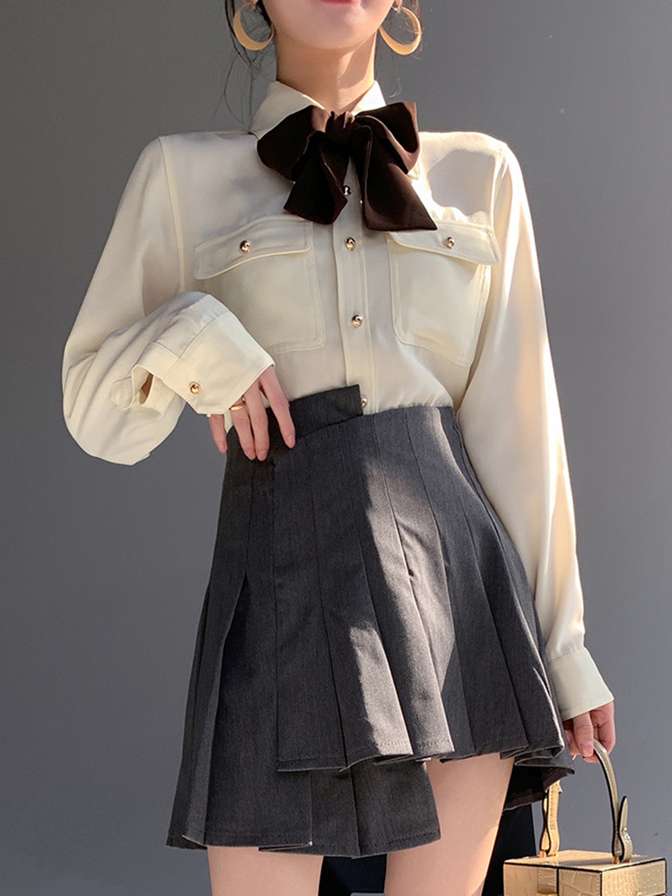 Style details: bow, pocket, button