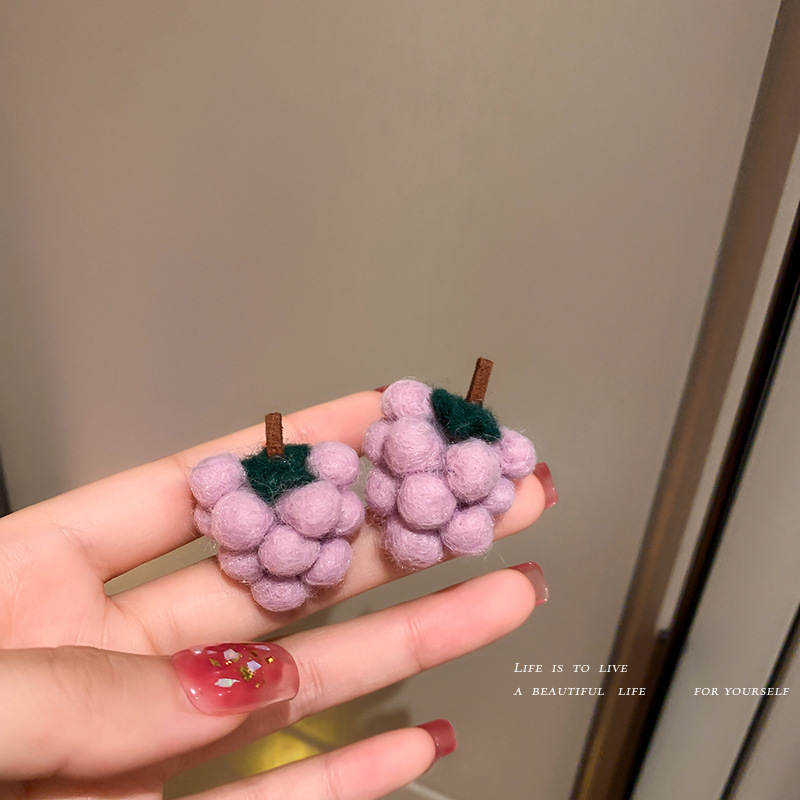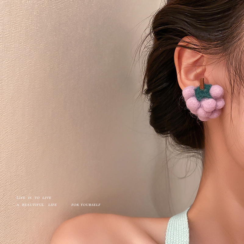 Product information:Material: FeltStyle: Korean style/Korean styleStyle: Women'sShape: FruitInlaid material: not inlaidColor: Silver Needle. PurplePackaging Information:Felt earrings x1pair