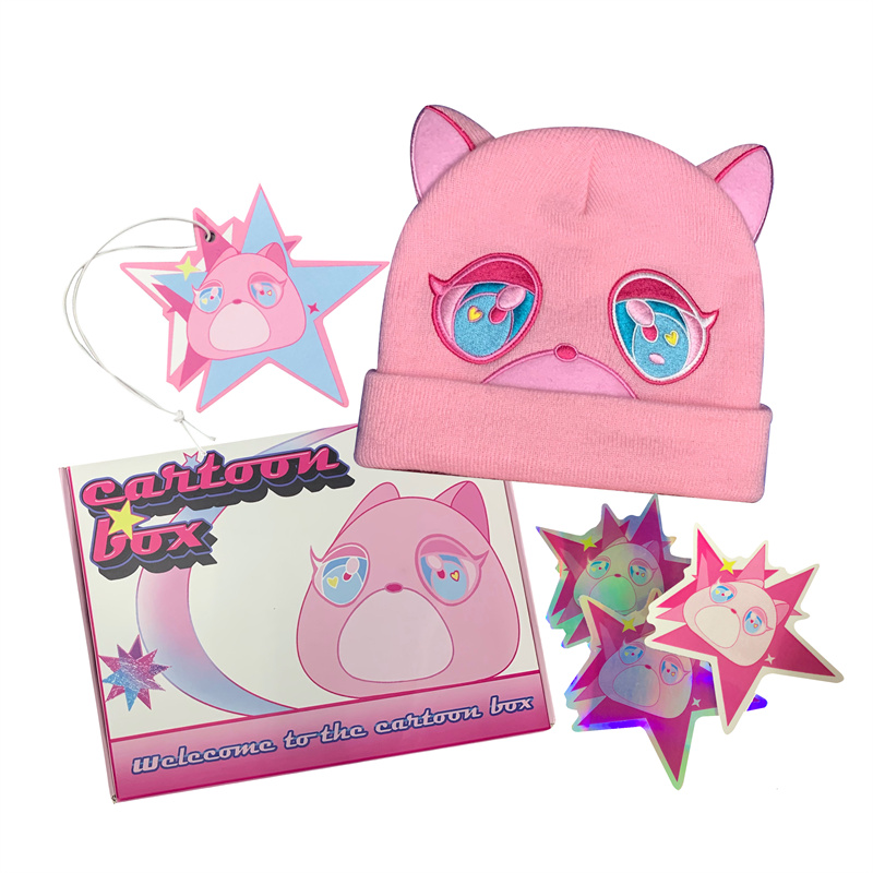 Different Eye Bear Embroidered Warm Wool Knitted Hat