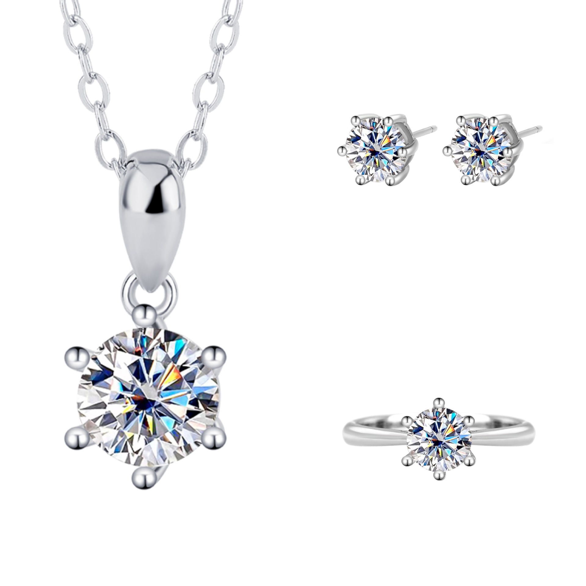 Color: 1 karat six prong ring (moissanite GRA certificate black card waist size),2 Karat six prong ring (moissanite GRA certificate black card waist size),1 karat six prong necklace (moissanite GRA certificate black card waist size),2 Karat six claw necklace (moissanite GRA certificate black card waist size),1 karat six claw stud earrings (moissanite GRA certificate black card waist size),2 Karat six claw stud earrings (moissanite GRA certificate black card waist size), White Gold color