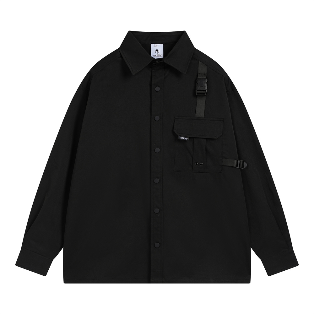 Goth Loose Long-sleeved Shirt Men's Ribbon Pocket Lapels Top