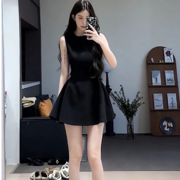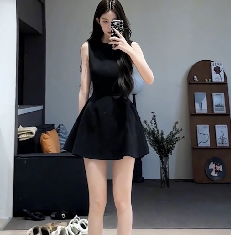 Product information:Color: Milky White, Black Waist type: elastic waist Size: S,M,L,XL,2XL Popular elements: Folding Style: pullover Sleeve length: sleeveless Skirt Category: Dress