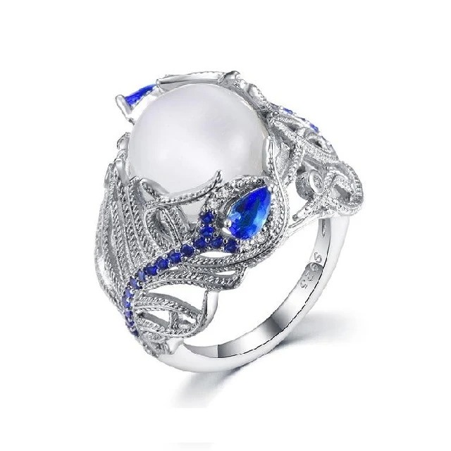 Moonstone Opal Flower Ring