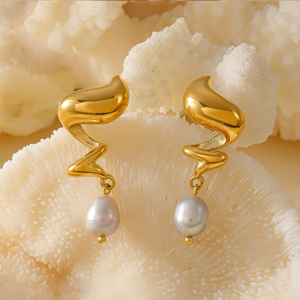 Product information:Treatment Process: Electroplating Color: F1584-steel earrings, F1584-gold earrings Applicable population: Female Material: stainless steel freshwater pearl Shape: Geometry Popular elements: Pearl