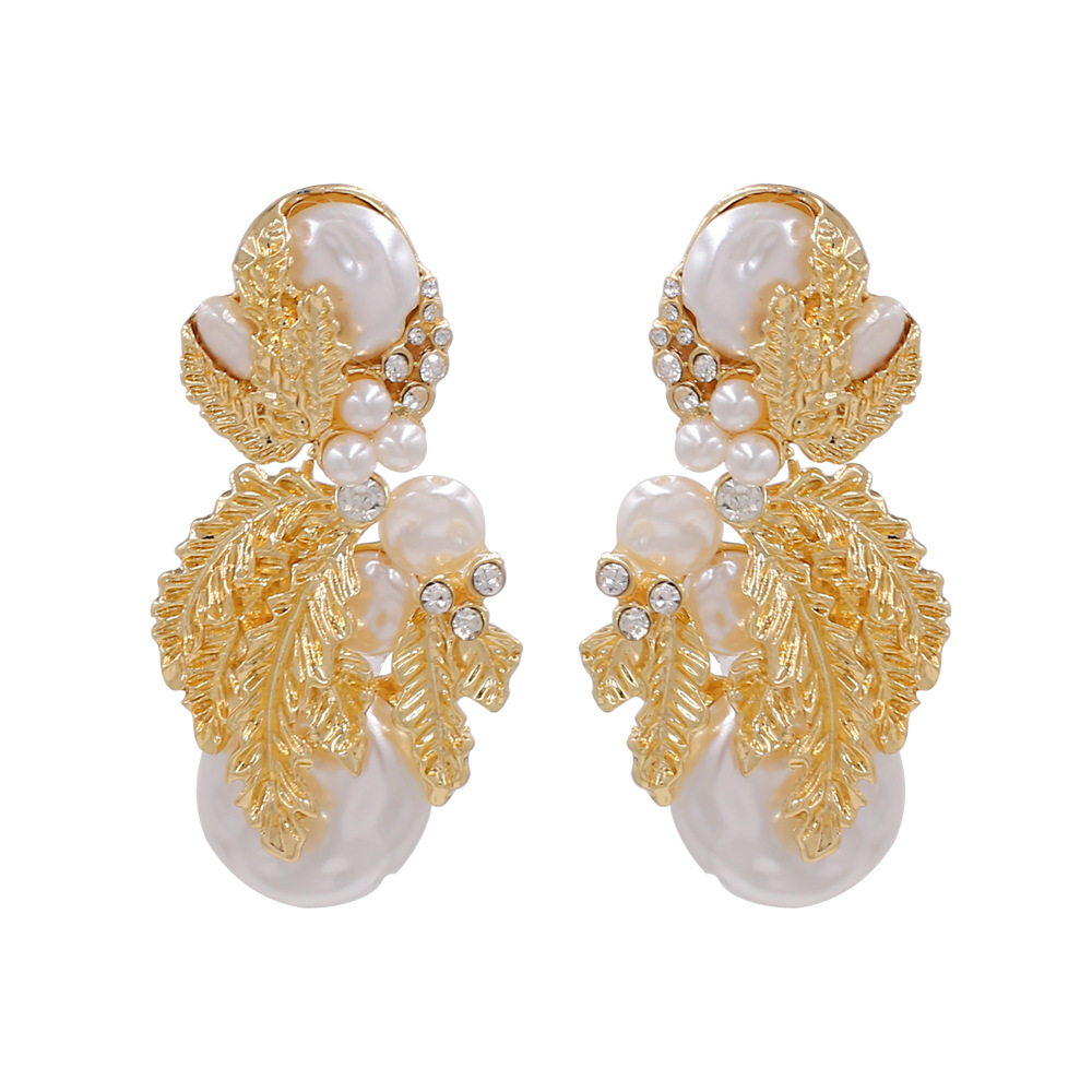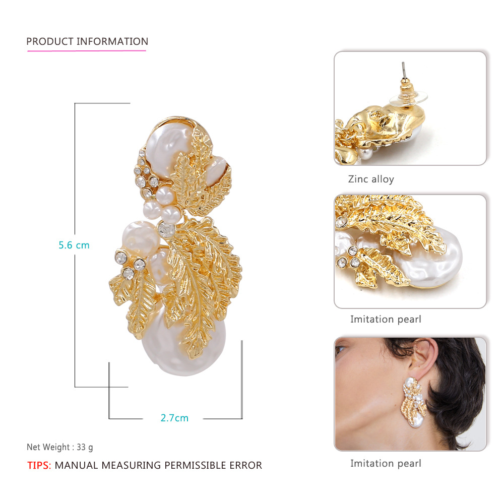 Product DetailsMaterial: AlloyStyle: leavesTreatment process: inlaid with pearlsPackaging: Individually packedColor: goldenPacking listPair of earrings
