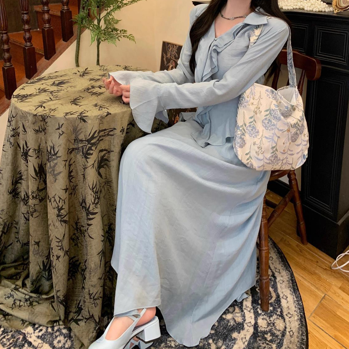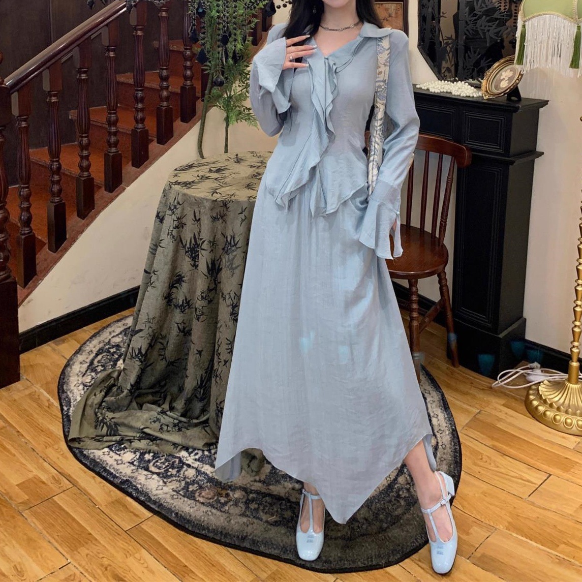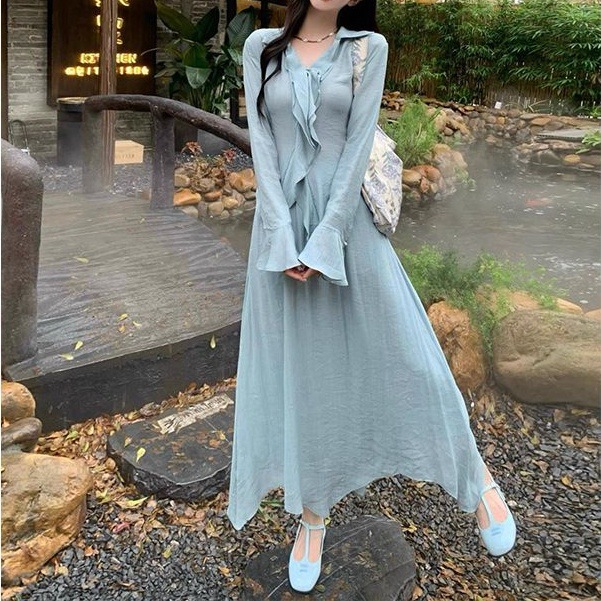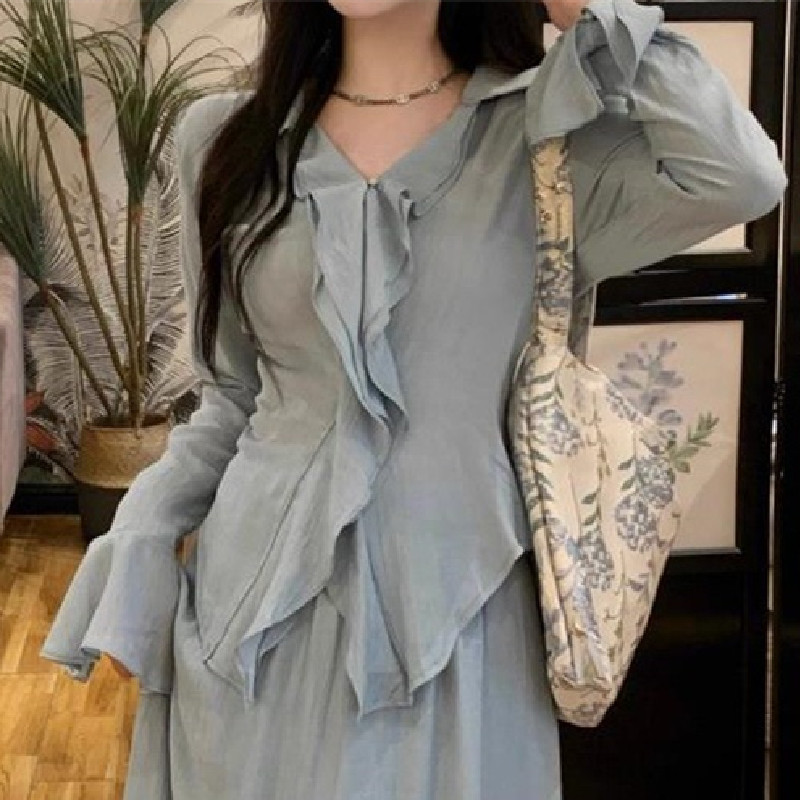 Product information: Fabric name: Polyester Color: water green top, water green skirt, water green top water green skirt Size: S,M,L,XL Applicable Gender: Female Style type: Casual Sleeve length: long sleeve