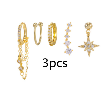 Material: Environmentally friendly brass plated with 18k real goldStyle: Eight Point Star Five Point Star Chain Tassel CircleStyle: Simple