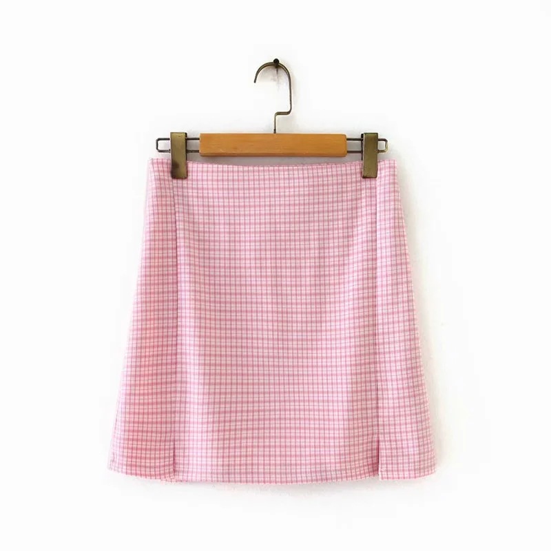 Product information:Pattern: Plaid Fabric name: Polyester Fiber Color: 1701 pink and white small plaid, 1669 blue and white plaid Size: XS,S,M,L Skirt length: short skirt