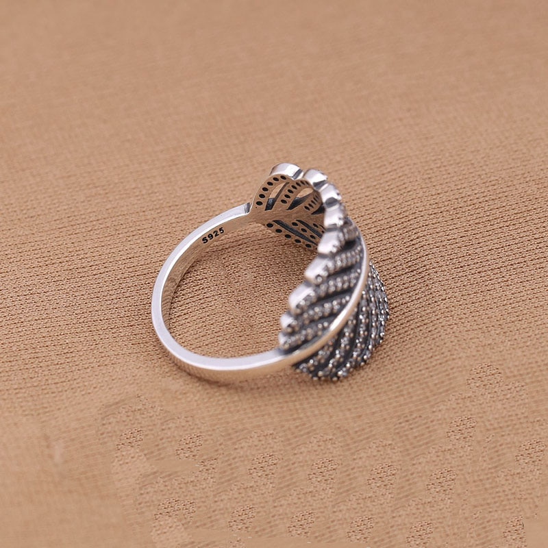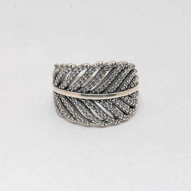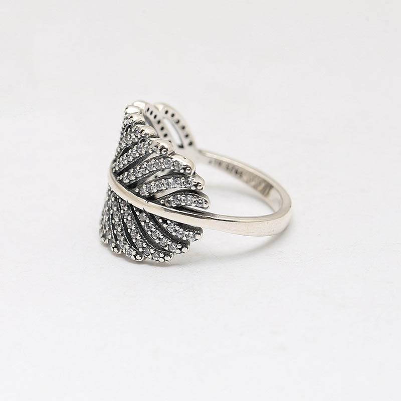 S925 Sterling Silver Inlaid Banana Leaf Ring