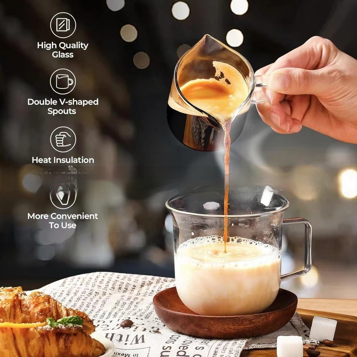 Double Mouth Coffee Cup Transparent Glass