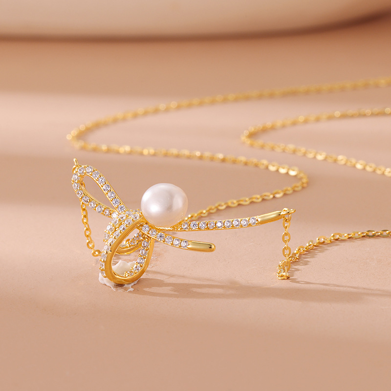 Product information:Color: bow necklace s925 sterling silverPendant material: 925 silverChain style: cross chainMaterial: SilverPopular elements: BowApplicable people: womenStyle: affordable luxury style
