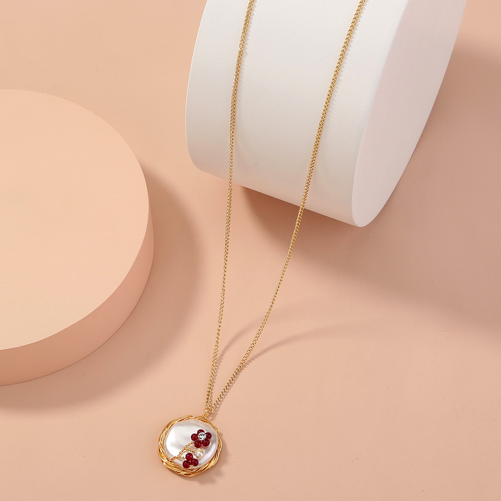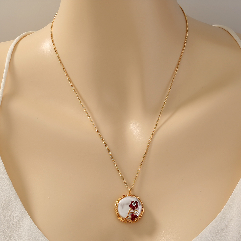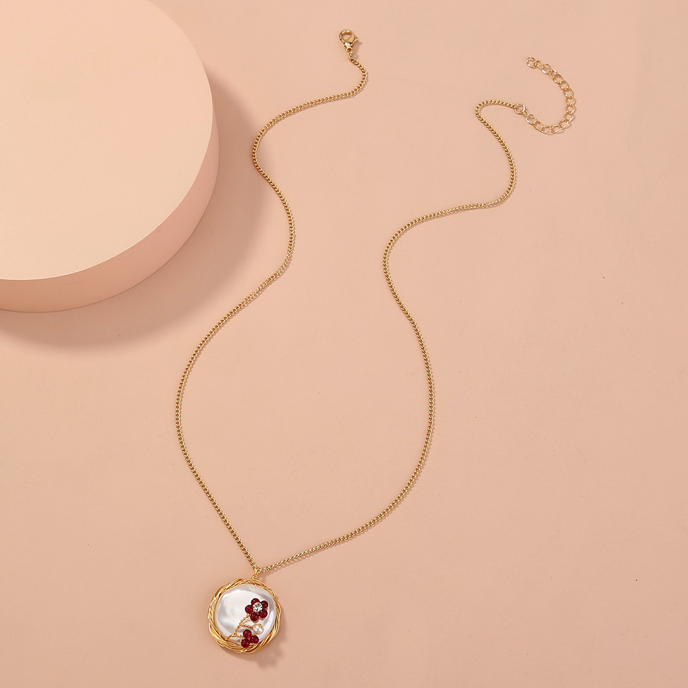 Women's Hand-Wound Red Flower Single Layer Necklace